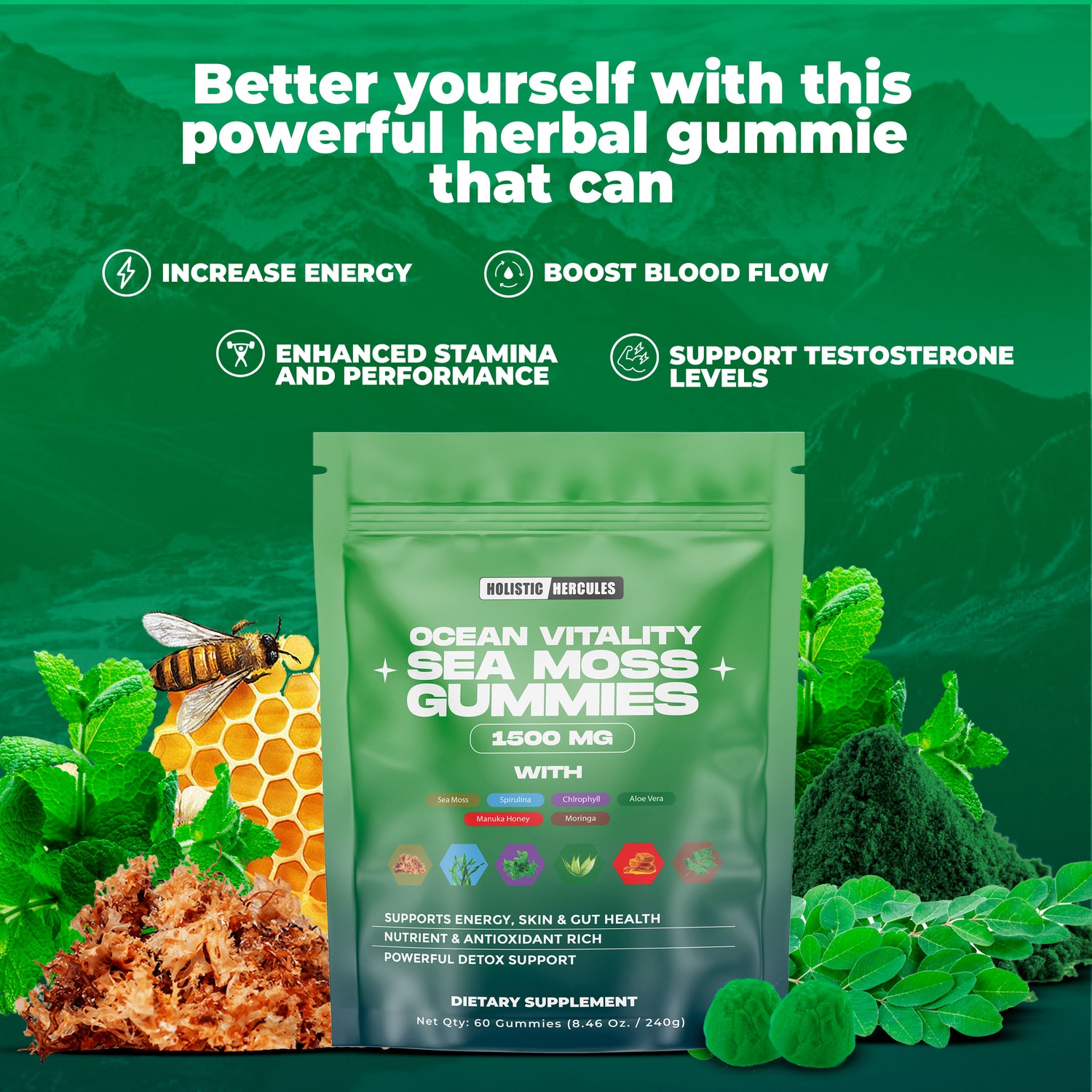 Packed with powerhouse ingredients like Sea Moss, Spirulina, and Moringa, these gummies offer the nutrients your body needs for optimal function. With 92 minerals including iodine, magnesium, and zinc, they support enhanced energy, stamina, and performance!